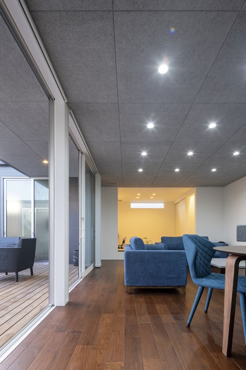 素材が光るコの字型の平屋
